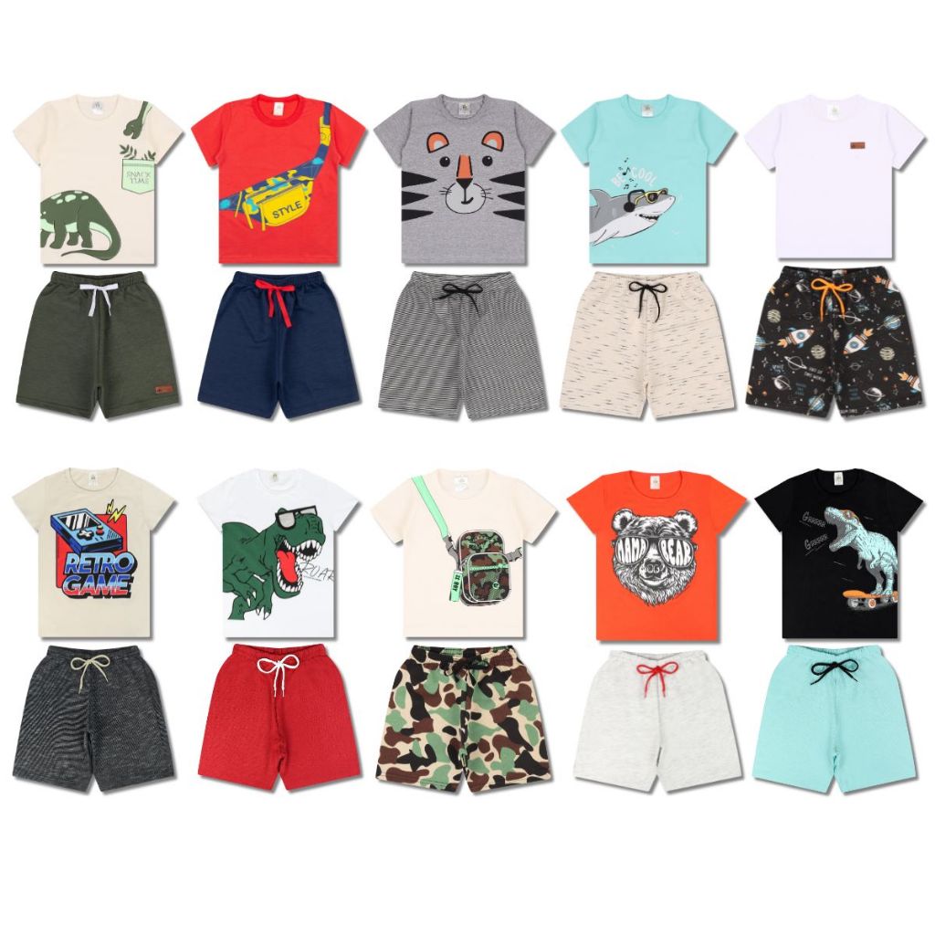 Kit com 5 Conjuntos SORTIDOS - Kit 10 Peças sendo 5 Camisetas + 5 Bermudas. *Recomendação de tamanhos* Tamanho 1 - Veste de 6 a 12 meses Tamanho 2 - Veste 1 ano Tamanho 3 - Veste 2 anos Tamanho 4 - Veste 3 anos Tamanho 6 - Veste 4/5 anos Tamanho 8 - Veste 6/7 anos Tamanho 10 - Veste 8/9 anos A camiseta é confeccionada em meia malha 100% algodão, gola redonda com reforço, possui manga curta e regata. A bermuda é feita em moletinho 100% algodão, elástico confortável na cintura. O conjunto é fabricado essencialmente com algodão em suas composições, garantindo resistência, maciez e conforto. É ideal para dias mais quentes, passeios e momentos de lazer, além de versátil e prático. Não perca essa oportunidade de lançamento na Polo Infantil Store e garanta seu Kit conjunto agora mesmo. KIT COM 5 CONJUNTOS (5 BERMUDAS E 5 CAMISETAS) Tamanhos de 6 meses a 10 anos de idade. Os tamanhos recomendados acima podem variar de acordo com o biotipo/tamanho de cada criança. Por isso, recomendamos também conferir a tabela de medidas. • Tabela de Medidas: * ATENÇÃO ENVIAREMOS MODELOS VARIADOS CONFORME DISPONIBILIDADE EM ESTOQUE * NÃO TEM OPÇÃO DE ESCOLHA * CONFIRA A TABELA DE MEDIDAS PARA SABER O TAMANHO IDEAL * TAMANHO DO CONJUNTO NÃO QUER DIZER A IDADE DA CRIANÇA * CAMISETA 100% ALGODÃO * BERMUDA MOLETINHO 85% ALGODÃO *PARA ATÉ DOIS KIT DO MESMO TAMANHO, GARANTIMOS QUE NÃO VAI REPETIDO. PARA MAIS KITS ADQUIRIDOS DO MESMO TAMANHO PODE REPETIR COR OU ESTAMPA*
